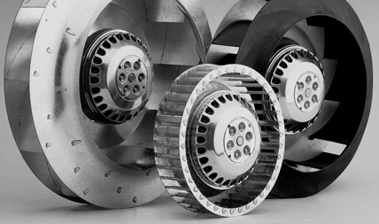 新型外转子风机 叶轮与外转子靠焊接或压装在外转子外圆上,形成一个整体。 没有二次组装的误差,可靠性和稳定性更高、振动更小。
