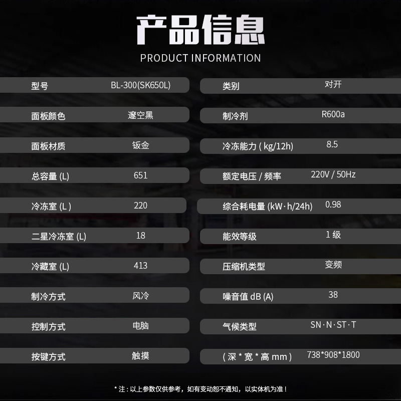 咨询:英腾BL-300(SK650L) 650升左右对开门防爆冰箱 * 为必填项