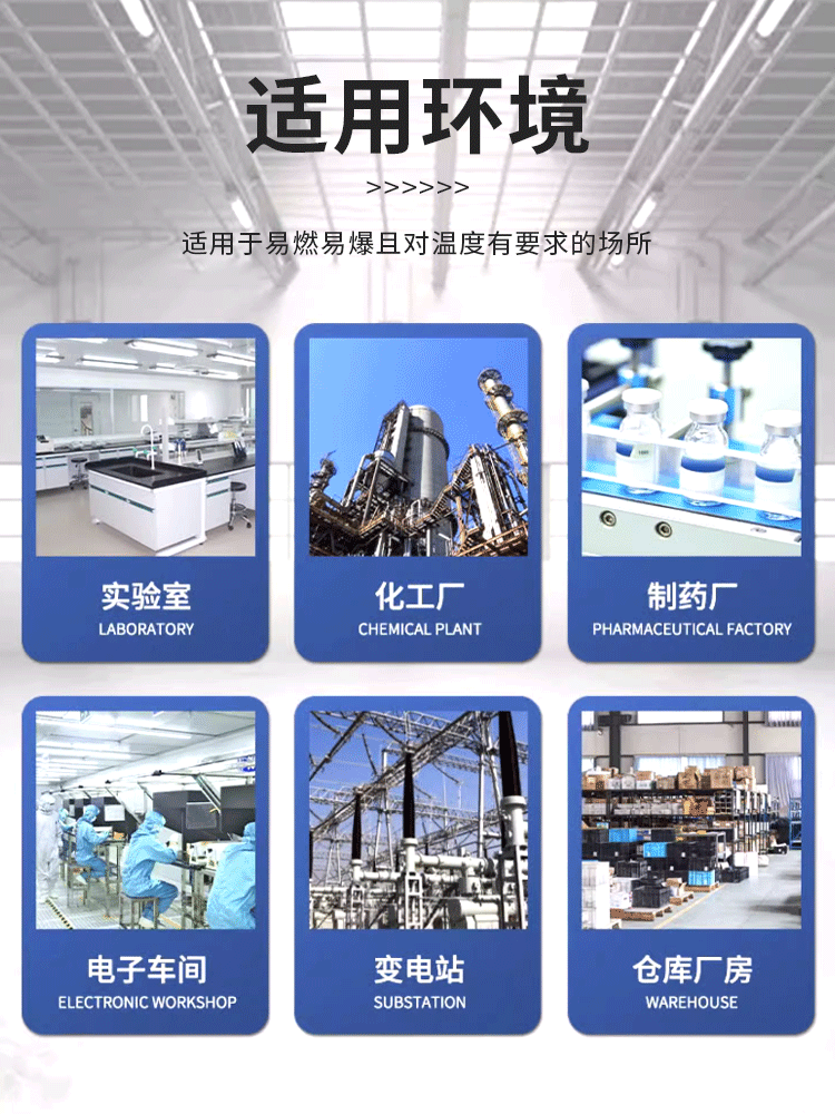 4.适用于国防、科研、石油、化工、军工、部队、制药、工厂变电站、仓储等易燃易爆场所。